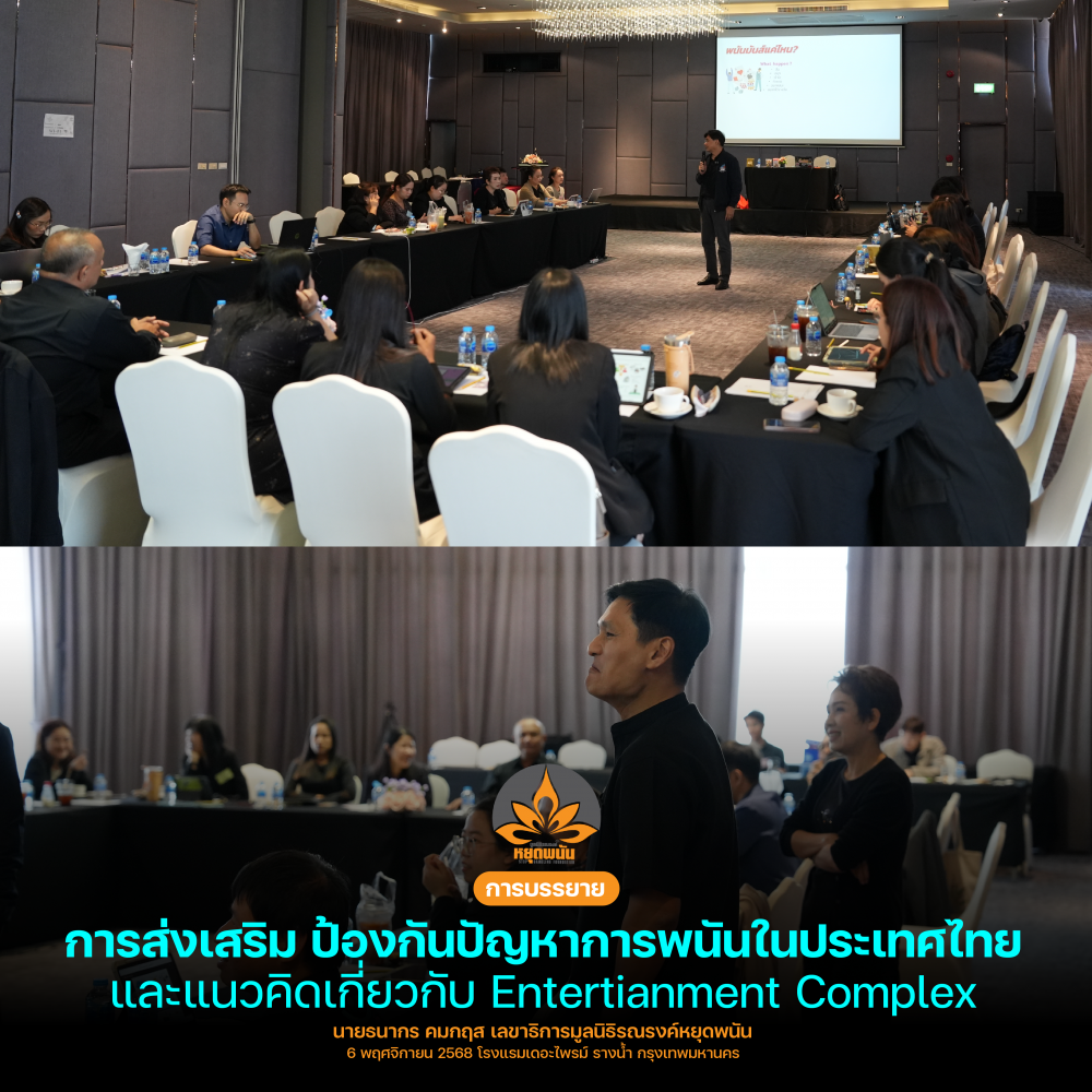 การบรรยาย ในหัวข้อ "การส่งเสริม ป้องกันปัญหาการพนันในประเทศไทย และแนวคิดเกี่ยวกับ Entertianment Complex" สำหรับกลุ่มโรงพยาบาลเฉพาะทาง โดย "นายธนากร คมกฤส" เลขาธิการมูลนิธิรณรงค์หยุดพนัน ภายใต้โครงการพัฒนาแนวทางและมาตรฐานการดูแลผู้มีปัญหาด้านยาเสพติดที่ติดการพนันและติดเกมสำหรับโรงพยาบาลเฉพาะทาง